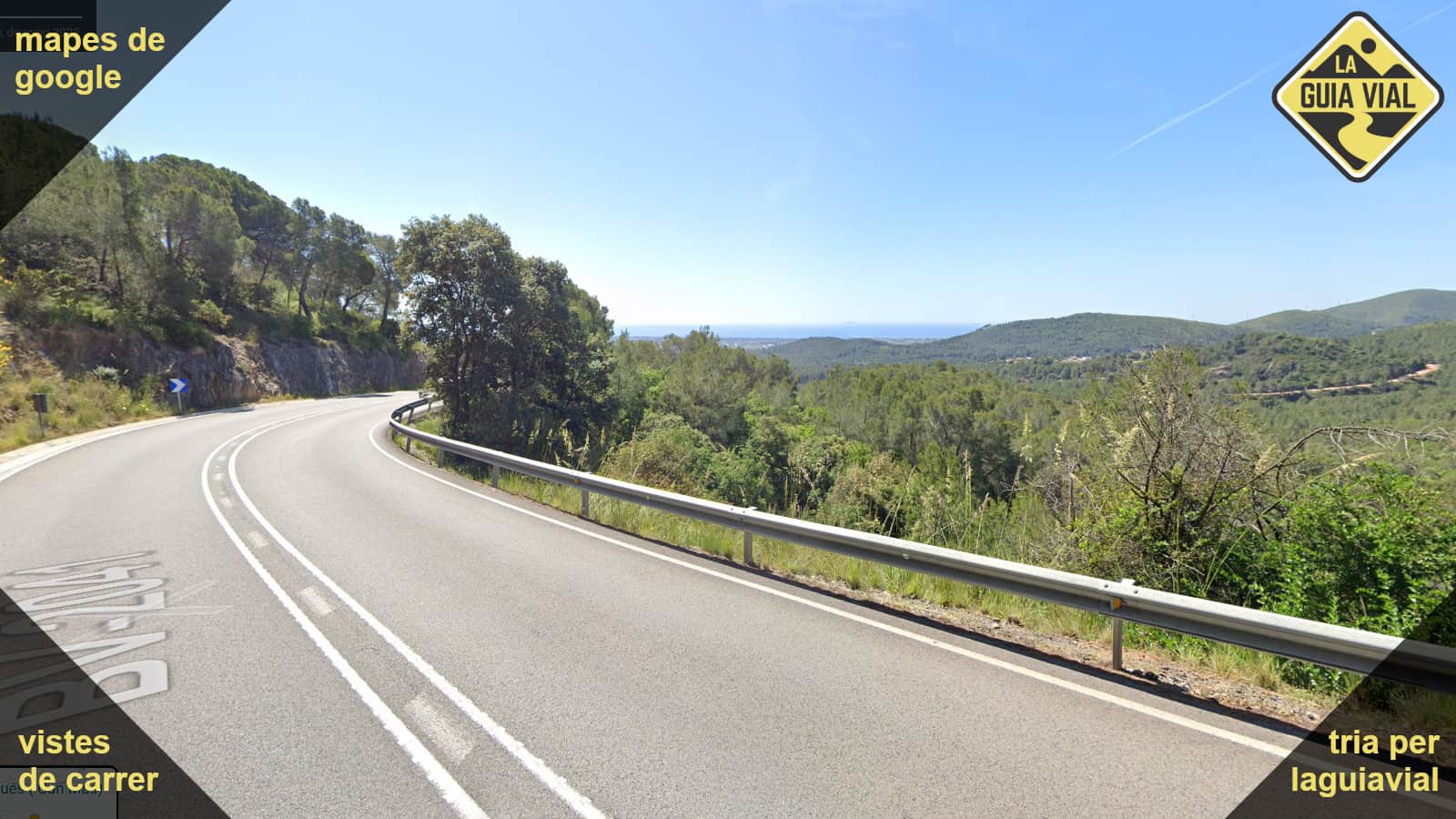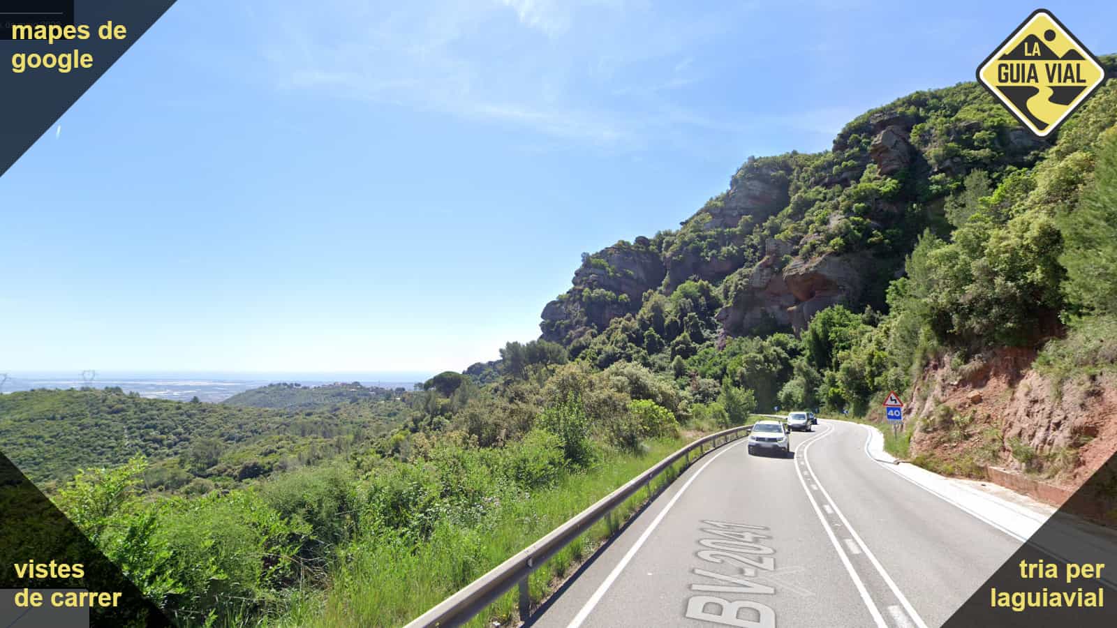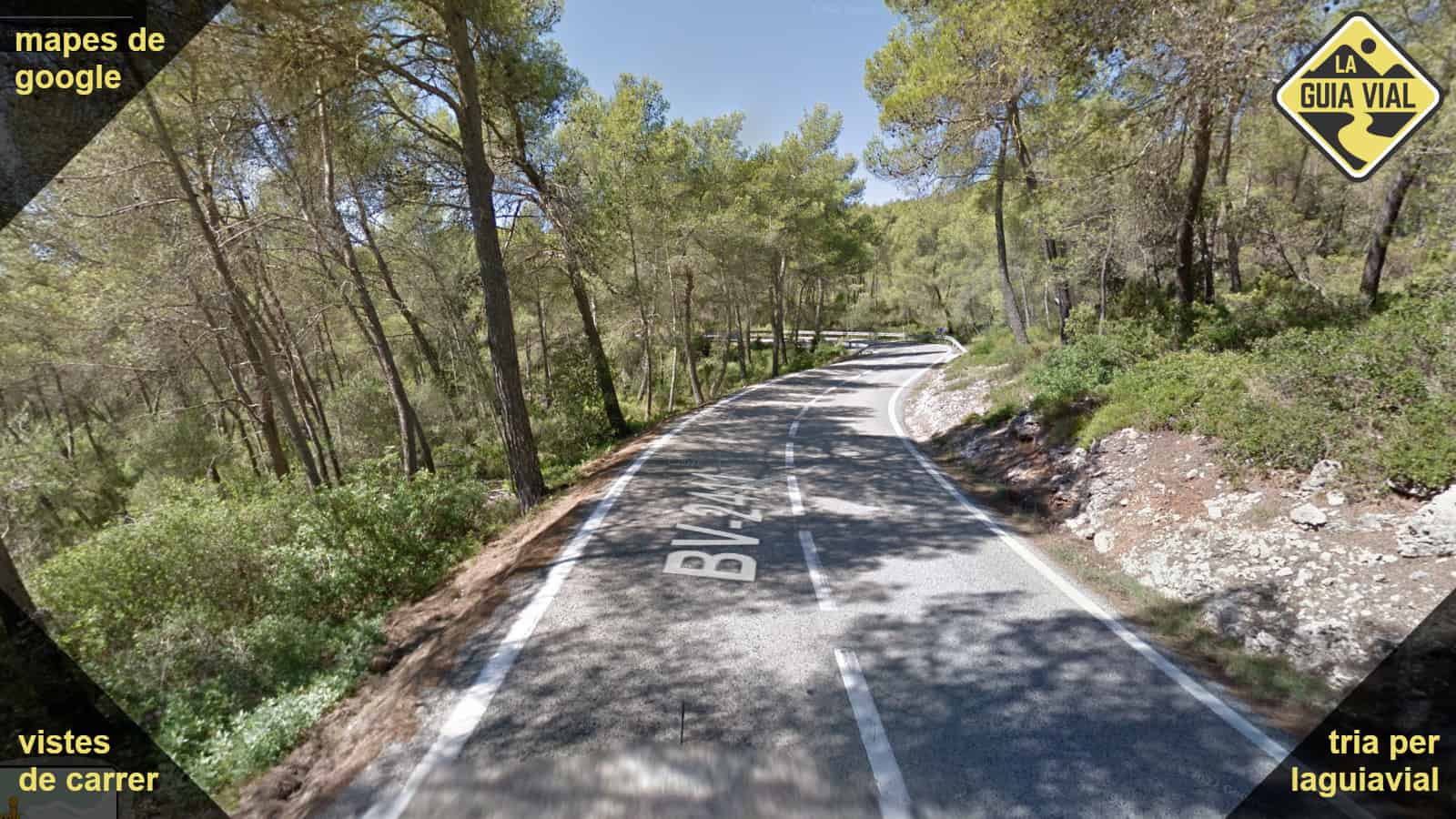 La carretera remonta desde la orilla del mar hasta Begues y después se ondula hasta las llanuras del Penedès.