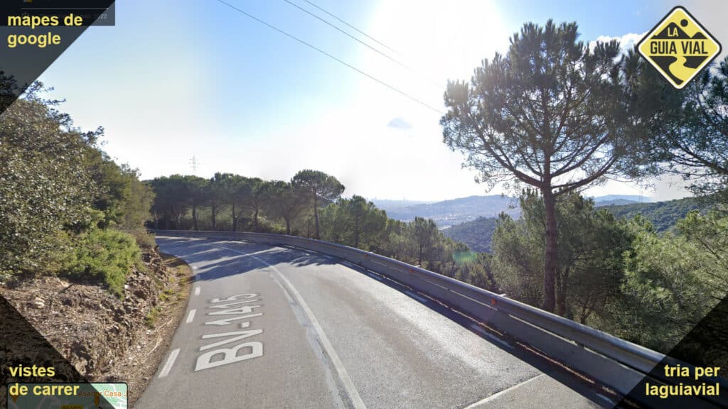 El tramo lo recorre entre bosque la vertiente norte y se abre con grandes vistas al sur sobre la ciudad de Barcelona.