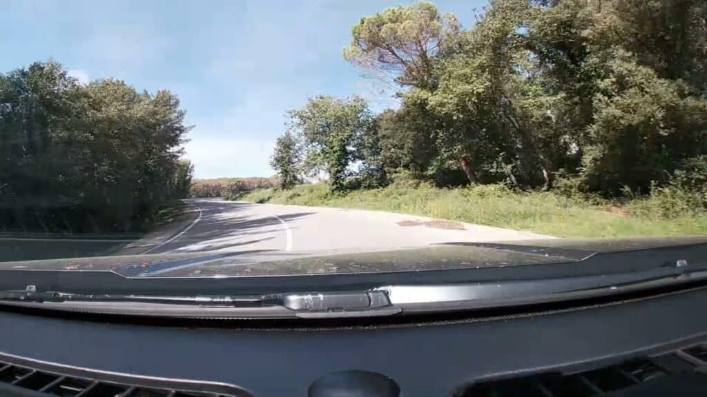 Carretera con líneas arcenes y central, anchura suficiente, buen asfalto y trazado natural.
