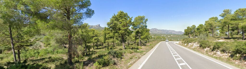 Carretera amplia amb línes voral i central, bon asfalt i traçat natural.