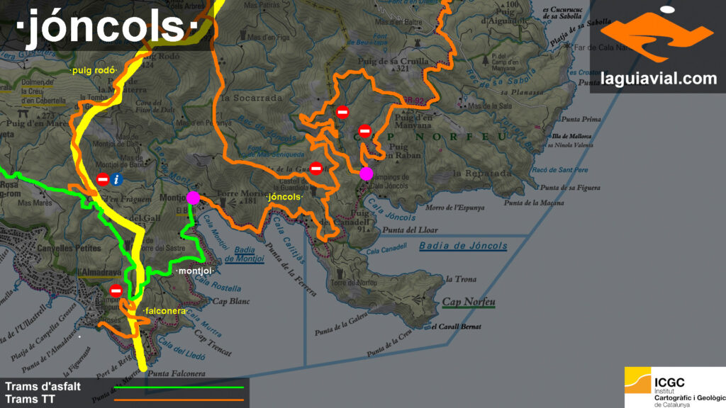pista ampla de la Cala Montjoi a la Jóncols un bonic panorama del Pirineu submergin’t-se al mar