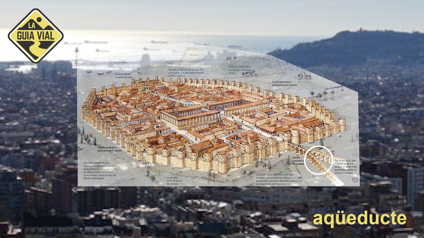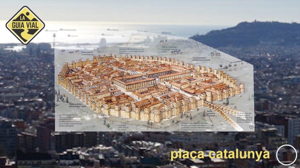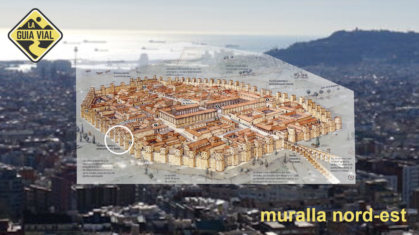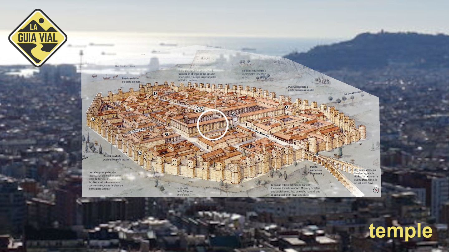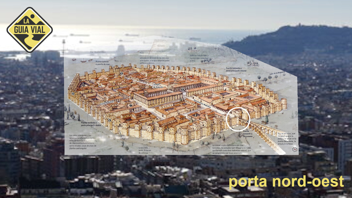 Aquesta estructura es pot resseguir encara avui dia: el carrer de la Llibreteria, que neix a la plaça de l’Àngel, on hi havia la Porta Sinistra de les muralles, és l’antic cardus que creuava la ciutat de nord a sud, fins a l’anomenada Porta Dextra, al final de l’actual carrer del Call; la plaça de Sant Jaume, al centre, s’estén una mica més al sud-est d’on aleshores hi havia el Fòrum; i els carrers del Bisbe, de la Ciutat i del Regomir ressegueixen l’antic decumanus des de la Porta Praetoria, a l’oest, fins a la Porta Decumana o porta del Mar, a l’est.