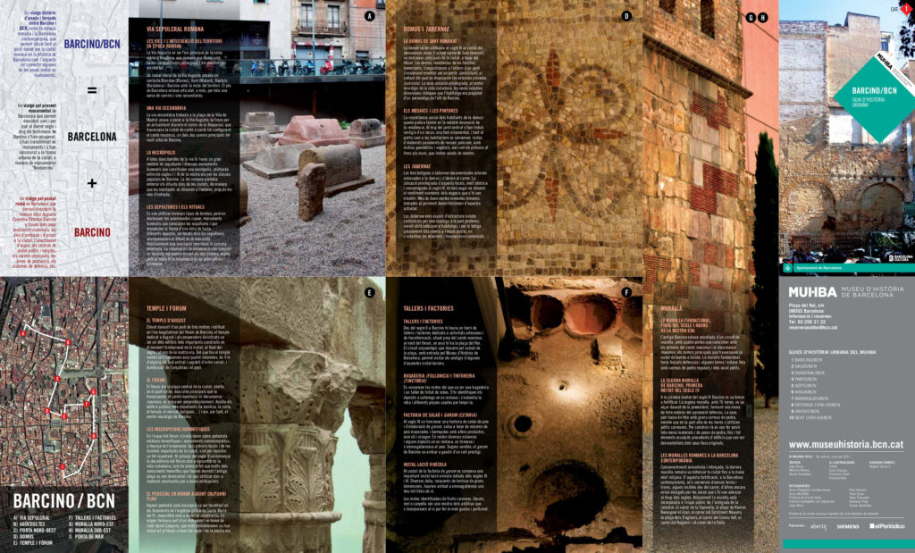 Quan van arribar els romans, entre els anys 15 i 13 aC, buscaven el millor lloc per fundar una colònia situada entre les pròsperes Emporiae (Empúries), a la costa nord, i Tàrraco (Tarragona), a la costa sud. El lloc triat va ser el cim del Mons Tàber, un petit turó davant del mar i que dominava la plana, on actualment es troba la plaça de Sant Jaume. No els va costar gaire aconseguir el control dels assentaments dels voltants. La colònia, amb el nom complet de Iulia Augusta Faventia Paterna Barcino, va créixer ràpidament, i entre els segles I i II es va emmurallar, va reforçar les muralles entre els segles III i IV i va delimitar un perímetre que es mantindria fins a l’edat mitjana. També es va mantenir l’estructura pròpia d’una ciutat romana, amb un fòrum al centre del qual sortien dos carrers en forma de creu, el cardus i el decumanus, que conduïen a les quatre portes d’accés.