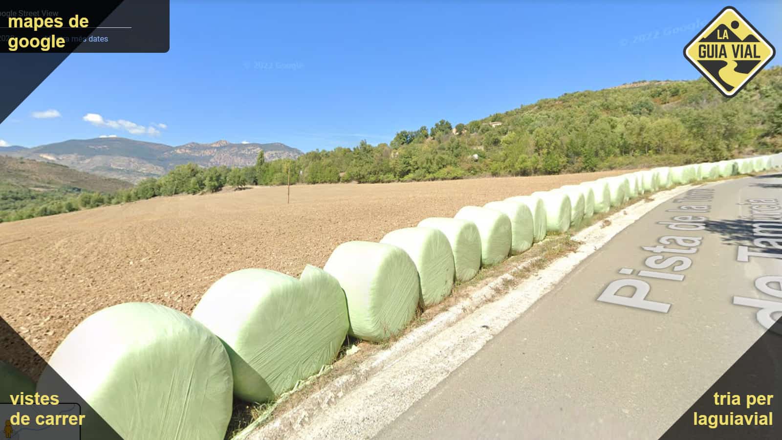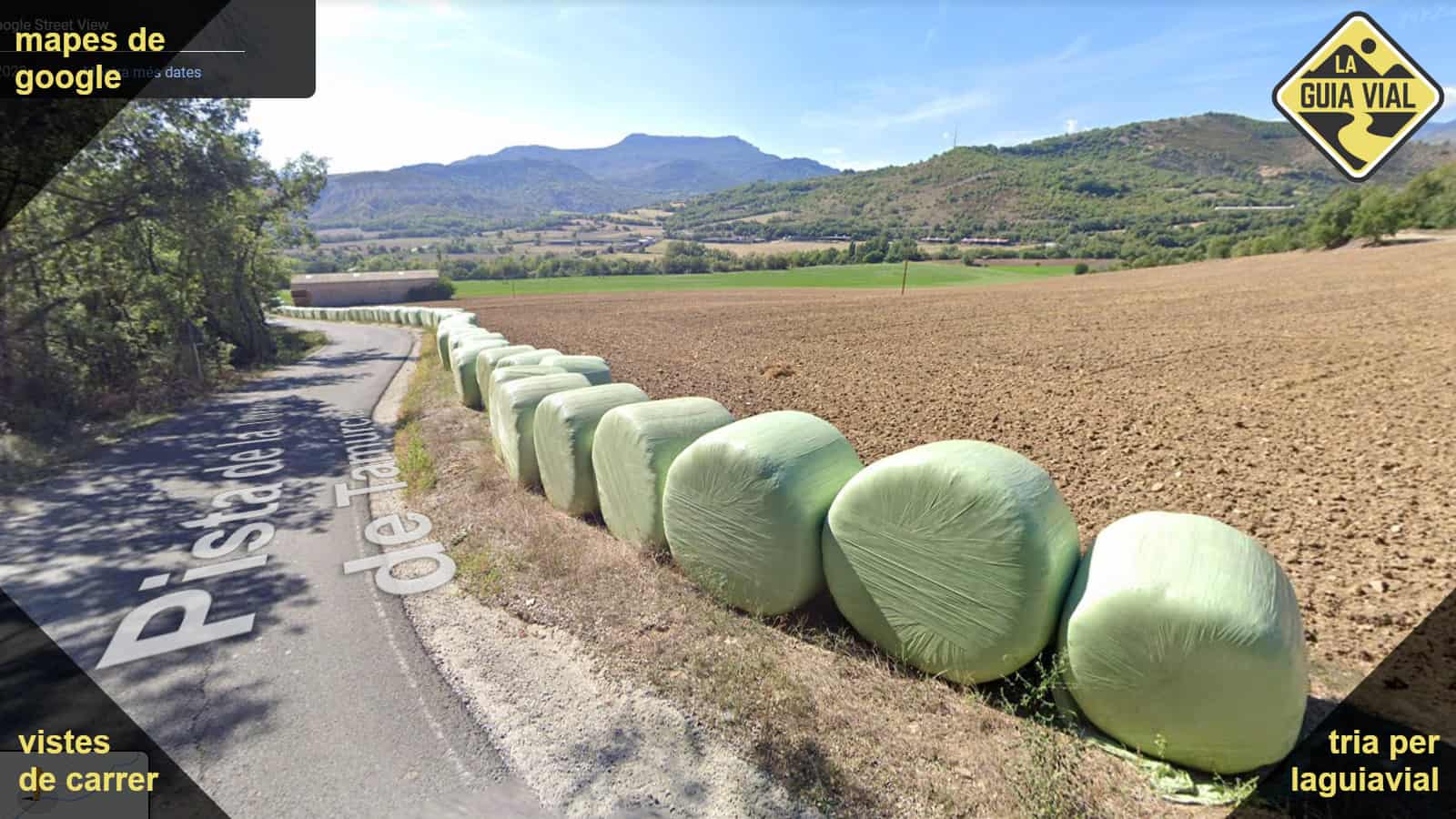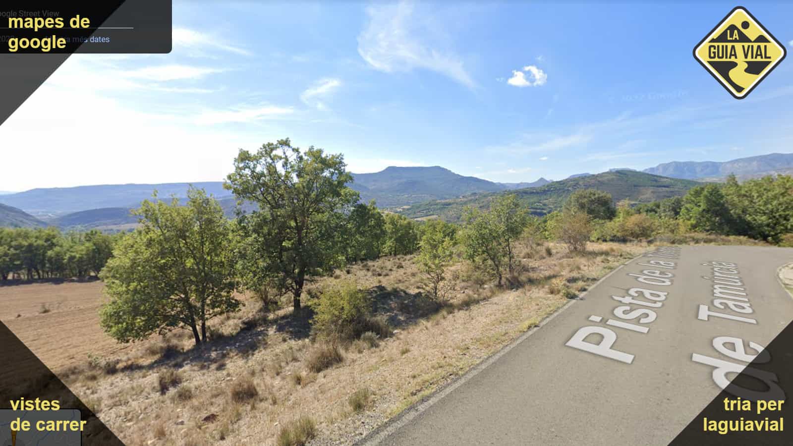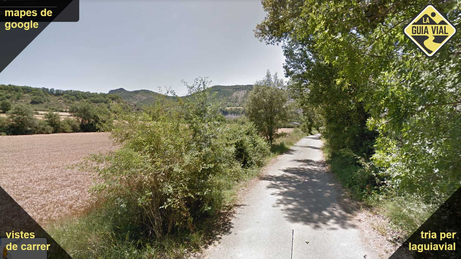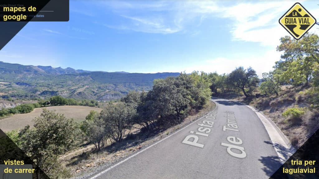 Carretera estreta amb línies vorals, bon asfalt i traçat natural.