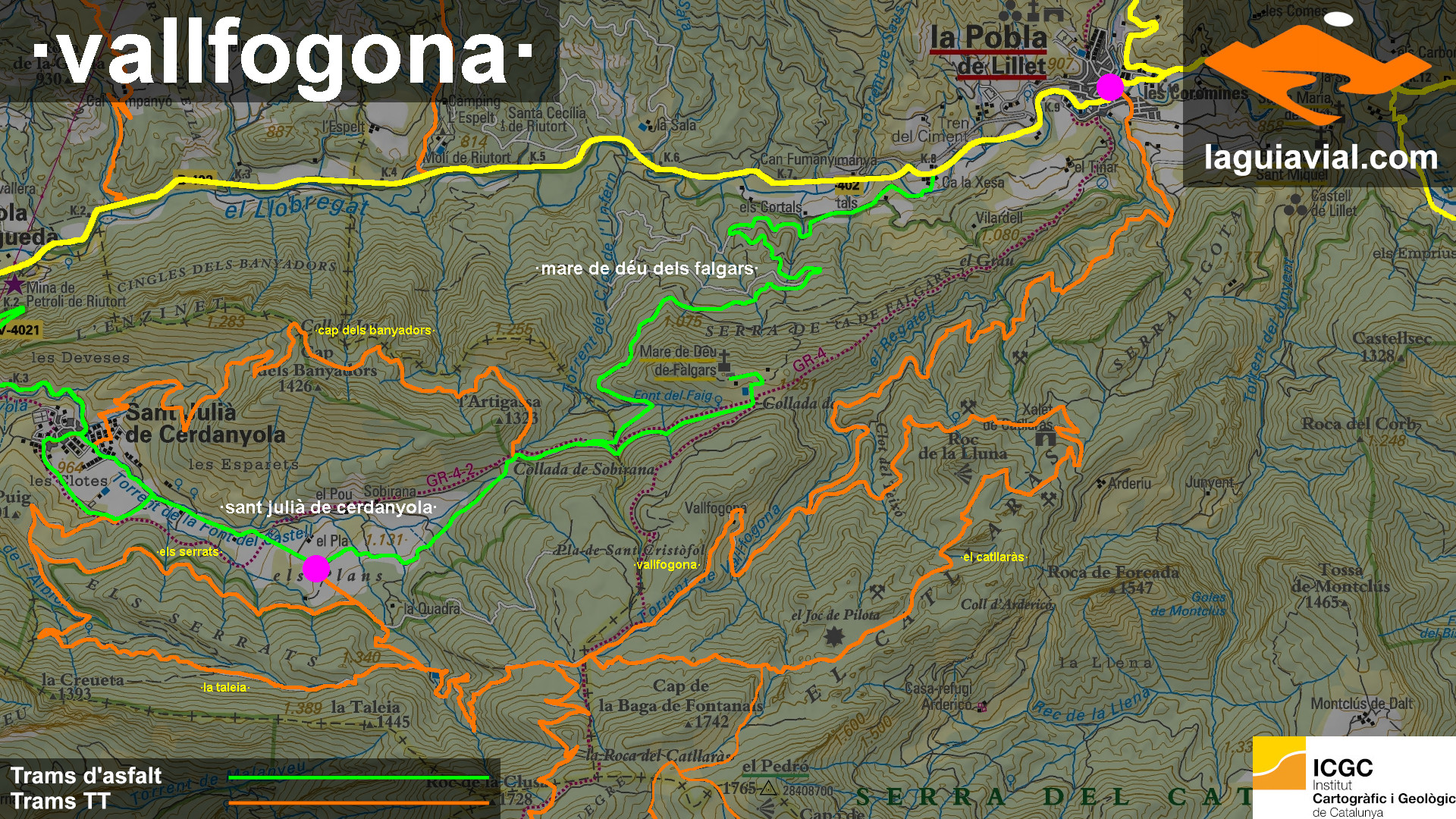 empalma la Pobla de Lillet amb Sant Julià de Cerdanyola, assaborint tot l’encant del Catllaràs